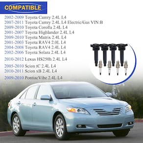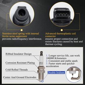 Número da peça do fabricante: UF333 + 7092 Número da peça de reposição da bobina de ignição: UF333, C1330,5C1299,178-8314, E352, E363, E994, 52-1702, IC574, UF322, UF494,90080-190223,90919-02243,90919-02244,90919-02244,90919-02244,90919-02244,90919-02244,90919-02244,90919-02244,90919-02244,90919-02244,90919-02244,90919-02244,90919-02244,90919-02244,90919-02244,90919-0224Número da peça: BKR6EGP, NGK 2272, BKR6EIX Compatível com os seguintes veículos: Para 2002-2009 Toyota Camry 2.4L L4 Para 2007-2011 Toyota Camry 2.4L L4 elétrico/gás VIN:B Para 2009-2010 Toyota Corolla 2.4L L4 Para 2009-2010 Toyota Highlander 2.4L L4 Para 2009-2010 Toyota Matrix 2.4L 4L L4 para Toyota RAV4 2001-2003 2,0L L4 Para 2004-2008 Toyota RAV4 2,4L L4 Para 2002-2006 Toyota Solara 2,4L L4 Para 2010-2012 Lexus HS250h 2,4L L4 Para 2005-2010 Scion tC 2,4L L4 Para 2010-2011 Scion xB 2,4L L4 Para 2009-2010 Pontiac Vibe 2.4L L4 - ? Compatível com: Para Toyota: 02-09 Camry 2,4L· 07-11 Camry 2,4L elétrico/gás09-10 Corolla 2,4L01-07 Highlander 2,4L09-10 Matrix 2,4L· 01-03 RAV4 2,0L04-08 RAV4 2,4L· 02-06 Solara 2,4L. Para 10-12 HS250h 2.4L. Para 05-10 Scion tC 2,4 L, 10-11 Scion xB 2,4 L. Para Pontiac Vibe 2.4L 09-10. Verifique a segunda imagem principal para confirmar se a bobina de ignição e a vela de ignição são compatíveis com seu carro. - ? Excelente função: uma bobina de ignição e uma vela de ignição defeituosas podem resultar em falha de ignição do motor, inatividade irregular do motor, diminuição da potência, baixa economia de combustível, etc. Cada componente corresponde ou melhora o design do OE para garantir uma instalação rápida e fácil com desempenho e confiabilidade superiores, para fornecer desempenho superior de partida a frio e um motor mais suave. - ? Alta qualidade: a vela de ignição é uma vela dupla de irídio, tem uma vida útil muito mais longa, pode funcionar 100001 quilômetros, é uma faísca consistente e estável. A bobina de ignição feita de materiais de qualidade premium, a mola de aço inoxidável com supressor interno de ruído de ferrite evita a interferência de radiofrequência, o conector de bobina termoplástica avançado garante a conexão adequada e resiste a fraturas causadas pelo calor e pelo ciclo térmico, para melhor transferir a alta tensão criada pela vela de ignição do motor. - ? OE# UF333 e 7092. O pacote inclui: pacotes de bobina de ignição x4, vela de ignição dupla Iridium x4. Manual de instruções não incluído, fácil de instalar. - ? Serviço pós-venda: oferecemos 24 horas de atendimento ao cliente e 1 ano de serviço de produto. Se você encontrar a instalação do produto, a qualidade do produto e outros problemas, não hesite em nos contatar.