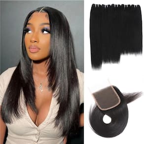 Pacotes de cabelo MeiQin com fecho Cabelo humano liso 5 feixes com fecho (12 14 14 16 16+14") Cor preta natural Remy brasileira 100% não processada - feixes retos Materiais de cabelo humano: feixes de cabelo humano brasileiro, feixes de cabelo virgem 100% não processados cortados por meninas, saudáveis e limpos. Sem mistura de pelos sintéticos ou de animais, sem cheiro, sem processo químico — feixes retos Qualidade do cabelo humano: trama dupla, firme, grossa e saudável. Sem queda, sem emaranhados, feixes de cabelo humano lisos e sedosos — Pacotes retos Comprimento do cabelo humano: fiel ao comprimento e peso total. 12 14 16 polegadas para feixes de cabelo brasileiros com fecho, 50 g/pacote. 5-6 pacotes. Pode ser suficiente para fazer uma cabeça cheia — feixes retos Cor do cabelo humano: feixes retos pretos naturais, o cabelo humano brasileiro pode ser enrolado, branqueado e estilizado como seu próprio cabelo. Pacotes virgens não processados de alta qualidade, vendidos em uma fábrica de cabelos 100% humanos — Pacotes MEIQIN Vantagens do cabelo humano: feixes retos, cabelo humano proporcionará uma aparência brilhante para a vida diária, casamentos, datas, festas e assim por diante. Sempre que você tiver problemas, Você pode me dizer e nós o ajudaremos a resolver até que esteja satisfeito