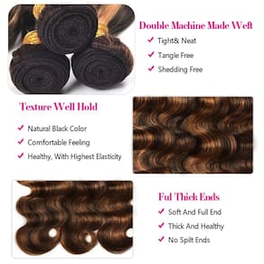 - ?Cor #P1B30 Material do feixe?: Feixes de cabelo virgem brasileiro 8A, macio, macio e volumoso, mechas de cabelo humano, grosso e completo e durável, sem emaranhados ou galpões.
