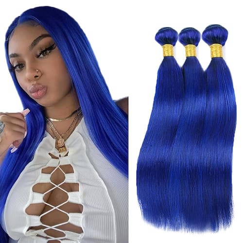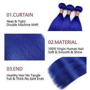- ? Cor azul liso do feixe?: Cor azul puro, mechas de cabelo humano liso azul.