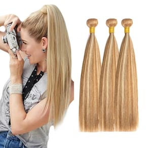 - Cor das extensões de cabelo humano: P27/613 Destaque loiro liso feixes cabelo humano é muito bonito e moderno.