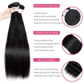 Feixes retos Material de cabelo humano: feixes de cabelo humano brasileiro 100% não processados, cortados diretamente de jovens doadores, macios, sedosos, limpos e saudáveis - 1. Feixes retos Material de cabelo humano brasileiro: feixes de cabelo humano brasileiro 100% não processados, cortados diretamente de jovens doadores, macios, sedosos, limpos e saudáveis - 2. Qualidade dos feixes de cabelo humano humano liso de 12 A, trama dupla, cheios e grossos, com queda mínima de emaranhados, lata Seja enrolado, branqueado e estilizado como seu próprio cabelo - 3. Os feixes de cabelo humano apresentam comprimento e peso: fiel ao comprimento e ao peso total. 14-28 polegadas para Pacotes de cabelo brasileiros, 100 g/pacote (3,5 onças/pacote), 3 pacotes podem ser suficientes para fazer uma cabeça cheia - 4. Pacotes de cabelo humano liso Penteado e ocasião: feixes de cabelo liso criam com facilidade e rapidez seu penteado favorito. Adequado para feriados, festas de aniversário, cerimônia de formatura, casamento, tornam você a mais charmosa; também podem ser utilizados como presentes para familiares ou amigos - 5. Atendimento ao cliente: temos nossa própria fábrica de cabelos, Se você tiver algum problema com nosso produto, faremos o possível para lhe proporcionar uma experiência de compra satisfatória