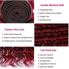 - ?Material do pacote Borgonha?: Cabelo humano virgem brasileiro não processado, cabelo humano ondulado profundo vinho 8A, saúde natural.