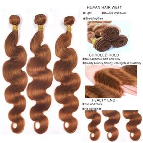 Descrição do cabelo humano: 1. Typer de cabelo: trama de cabelo humano virgem brasileiro. 2. Cor do cabelo: Pacotes de cor nº 30, mechas marrom claro. 3. Cachos de cabelo: O corpo marrom envolve cabelo humano. 4. Peso do cabelo: 3 feixes, 100 g/pacote, 300 g no total. 5. Material do cabelo: mechas de cabelo humano virgem brasileiro, sem mistura química. 6. Pode ser permanente: pode ser ondulado profundamente como você desejar, mas tenha cuidado para não exceder 51,7 °C. Perguntas e respostas: P1: Quantos mechas eu preciso para uma cabeça inteira? R1: Normalmente, 3 mechas são suficientes para fazer uma cabeça inteira, mas se você quiser parecer mais longo ou mais cheio, 4 mechas podem ser uma escolha melhor. P2: Vai cair? R2: Para novos mechas de cabelo, é normal perder alguns fios de cabelo no início, assim como nosso próprio cabelo. O cabelo é trama dupla à máquina para evitar quedas. A queda de cabelo pode ser causada por muitas coisas. Danos causados pelo calor de secadores, chapinhas e chapinhas, bem como a coloração resultarão em quebra. P3: Como cuidar do cabelo? R3: Limpe regularmente a sujeira e hidrate com xampu e condicionador, penteie seu cabelo com um pente de dentes largos todos os dias. Desembarace o cabelo suavemente antes de lavar. Não esfregue ou torça. Retire o excesso de água com uma toalha e deixe o cabelo secar naturalmente. Não exponha ao sol. - Material do cabelo: mechas de cabelo virgem brasileiro, trama de máquina dupla; é natural e saudável, macio e volumoso; sem emaranhados ou derramamentos, sem piolhos, cheio e grosso - Cor do cabelo: castanho claro, 30 cores; brilhante e bonito, pode ser esticado, enrolado, descolorido, estilizado como seu próprio cabelo; uso confortável, pode ser tingido, permanente, destacado ou estilizado adequado para o dia a dia - Vantagem: limpo e saudável, livre de emaranhados e sem queda; trama dupla reforçada, acabamento requintado; natural e confortável, macio e brilhante; sem qualquer divisão, não seca, fácil de cuidar, não machuca seu couro cabeludo - Comprimento do peso do cabelo: um pacote tem três feixes, e o peso de um único pacote é de 100 g; várias opções, não importa o cabelo curto ou longo que você goste, dependendo de suas necessidades; para o comprimento, estique o cabelo para ficar liso e depois meça - Adequado para todos os tipos de ocasiões: você pode usar mechas de cabelo humano em qualquer ocasião, por exemplo, festa, Halloween, festival, show de palco, Natal, escola, férias, uso diário, mantém você bonita e charmosa