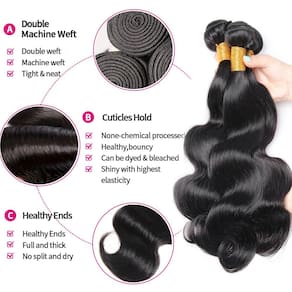 Material de feixes de cabelo humano: extensões de cabelo humano virgem brasileira 100% não processadas, cortadas diretamente de um jovem doador, sedosas, macias, limpas e saudáveis, sem mistura de pêlos sintéticos ou pêlos de animais. Sem cheiro, sem processamento químico. Pacotes de ondas corporais Peso e comprimento do cabelo humano: o feixe de ondas corporais é de 80 (+/- 5) g cada feixe, geralmente 3 feixes de cabelo humano. A onda corporal é suficiente para formar uma cabeça linda. Quando você mede, a maneira correta de medir é endireitar e medir o comprimento real. Características do cabelo humano dos pacotes: feixes de cabelo humano de cor natural, trama dupla resistente à máquina, trama superior requintada, justa e limpa, cheia e grossa, sem emaranhados e sem queda. Vantagens dos feixes de cabelo: podem ser descoloridos, esticados, confortáveis de usar, podem ser tingidos, permanentes, realçados, enrolados ou modelados adequadamente para o dia a dia, estilizados como você quiser, podem durar 1 ano com os devidos cuidados. Serviço brasileiro de pacotes de cabelo: ofertas de pacotes de cabelo humano adequados para festas, aniversários, casamentos, feriados, viagens e formaturas. Use diariamente ou envie como presente. - Material de feixes de cabelo humano: extensões de cabelo humano virgem brasileira 100% não processadas, cortadas diretamente de um jovem doador, sedosas, macias, limpas e saudáveis, sem mistura de cabelo sintético ou pêlos de animais. Sem cheiro, sem processamento químico. - Pacotes de ondas corporais Peso e comprimento do cabelo humano: o pacote de ondas corporais é de 80 (+/- 5) g cada pacote, geralmente 3 feixes de cabelo humano. A onda corporal é suficiente para formar uma cabeça linda. Quando você mede, a maneira correta de medir é endireitar e medir o comprimento real. - Características de cabelo humano: feixes de cabelo humano de cor natural, trama dupla robusta à máquina, trama superior requintada, justa e elegante, cheia e grossa, sem emaranhados e sem queda. - Vantagens dos feixes de cabelo: podem ser descoloridos, esticados, utilizados com conforto, podem ser tingidos, permanentes, realçados, enrolados ou estilizados adequadamente para o dia a dia, estilizados como você quiser, podem durar 1 ano com os cuidados adequados. - Serviço brasileiro de pacotes de cabelo: ofertas de pacotes de cabelo humano adequadas para festas, aniversários, casamentos, feriados, viagens e formaturas. Use diariamente ou envie como presente.
