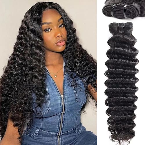 -?Material de cabelo humano Deep Wave Bundles?: feixes encaracolados indianos 100% não processados, cortados por meninas, macios e sedosos, saudáveis e duráveis, podem ser utilizados por pelo menos 6 a 12 meses com cuidado