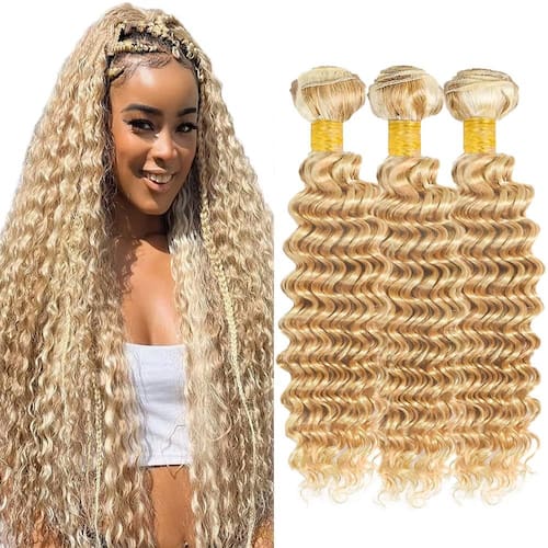 - Cor do cabelo: cabelo humano brasileiro onda profunda 3 feixes, cor de cabelo humano P27/613, macio e macio, 100 (+/-5) G cada pacote.