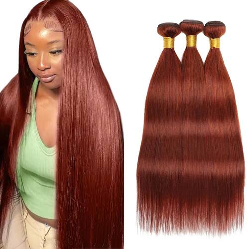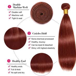 - ?Cor dos feixes vermelho cobre?: Os pacotes são de cor pura 33, cor marrom avermelhado. Pode ser alisado, enrolado, estilizado como seu próprio cabelo.