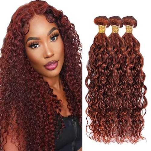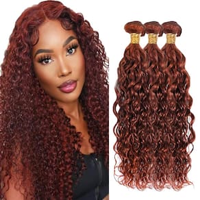 - ?Material dos feixes marrom avermelhado?: mechas de cabelo humano virgem brasileiro não processado, cabelo humano ondulado de água, macio e saudável para costurar ou perucas.