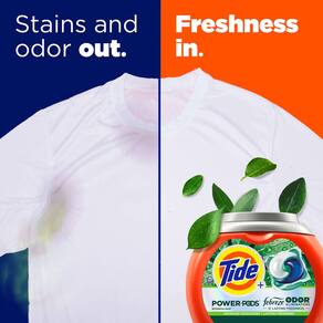 Tide Potes de detergente para roupas Power Pods com frescor Febreze com eliminadores de odores, aroma botânico de chuva, 45 unidades