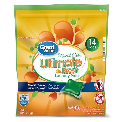 Great Value Ultimate Fresh Laundry Pacs, autêntico Clean, 340 ml (pacote com 2)