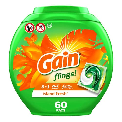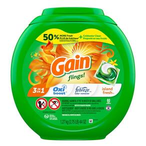 Gain Flings! Sabonete detergente para roupas compatível com HE 60 ct perfume de longa duração Island Fresh