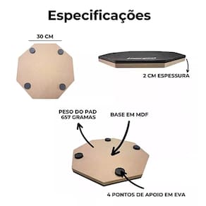 – Superfície em EVA de 5mm: rebote confortável, silencioso e com ótima resposta de baqueta