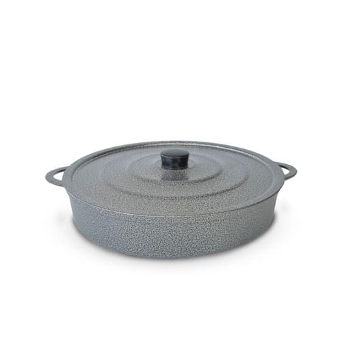 Paejeira Paellera Fundida Alumínio Batido Grosso Com Tampa 30cm Craqueado