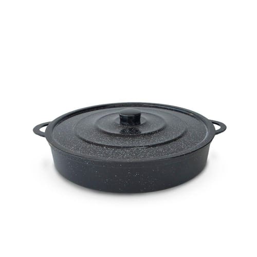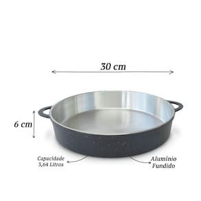 Paejeira Paellera Fundida Alumínio Batido Grosso Com Tampa 30cm Preto
