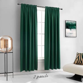 Cada painel de cortina tem uma ranhura de bolso de 3 polegadas com cabeçalho de 1 polegada, ajuste universal para a maioria das hastes.