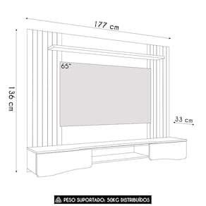 Painel 65 Pol e Bancada Suspensa 177cm Ivai Cinamomo/Off B02 - Mpozenato