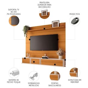 O Painel 70 Pol 180cm Bancada Suspensa Max Off/Cinamomo, da HB Móveis é composto por módulos e linhas retas, oferecendo uma estética contemporânea e clean.