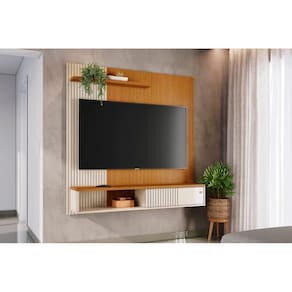 A estrutura é fabricada com painéis de MDP de 15 e 25 mm, oferecendo resistência e durabilidade. Projetada para ser fixada diretamente na parede, a bancada Aurora permite que o televisor seja instalado no painel integrado, garantindo um visual organizado e funcional. Suporta TVs de até 65"", atendendo às necessidades de diversos tamanhos de aparelhos.