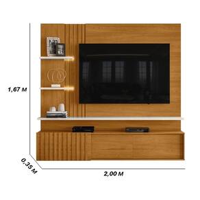 O Painel Bancada Suspensa Atena conta com 2 fitas de LED para iluminar e destacar seu ambiente, painéis e portas com detalhes ripados que trazem um charme único. Além disso, possui 3 portas de correr e painéis em MDP de 15 e 25mm, oferece praticidade, resistência e um design contemporâneo para transformar seu lar com elegância.