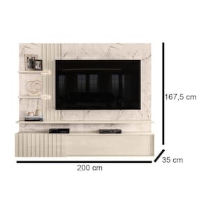 Com presença imponente e acabamento sofisticado, o Painel Atena é ideal para salas contemporâneas, unindo organização, estilo e tecnologia em um só móvel.