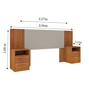 (CAMA/COLCHÃO não acompanham o produto) Produto Montado: Sim Acabamento da Mesa de Cabeceira: Pintura Ambiente Principal: Quarto Cabeceira Estofada: Não codigo_ean: 7909903576908 Complexidade da Montagem: Média: pode ser montado por mais de uma pessoa e/ou necessite de maior conhecimento para montagem Cor: Cinamomo/Off White Cor do Produto: Cinamomo/Off White Escala de Brilho: Fosco Escala de Brilho da Mesa de Cabeceira: Fosco Extensível: Sim Fixação Box: Não Fixação na Parede: Não Itens Inclusos: 1 painel e 2 mesas de cabeceira + kit de ferragem + manual de montagem Largura Máxima: 2,46 cm Largura Mínima: 2,27 cm Linha ou Coleção: RIPADO Manual de Montagem e Instalação: https://product-hub-prd.madeiramadeira.com.br/881753/documents/549325c4-64e6-40f4-b3d4-27ea0369e2a0lemesadecabeceirabarcelona.pdf Material da Mesa de Cabeceira: MDP Material Principal: MDP Necessita Montagem: Sim Origem do Produto: Nacional Peso: 43,4 kg Possui Baú: Não Possui Mesa de Cabeceira: 02 Possui Pés: Não Possui Vidro: Não Recomendações de Uso, Manutenção e Limpeza: A limpeza do móvel deve ser efetuada somente com pano macio e seco. Não utilizar produtos abrasivos ou similares, tais como: Cera, álcool, detergentes, tinner, lustra móveis, entre outros. Sistema de Montagem: Parafusos, cavilhas e minifix Tipo de Colchão: Casal/Queen