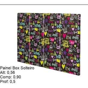 Painel Cabeceira Box 0,90 Infantil Cor Love Oferece um ambiente sofisticado de alta qualidade e acabamento para seu quarto. Procure nossas redes sociais e confira todos nossos produtos e qualidade de atendimento Dimensões do produto montado: Altura: 0,56 cm Largura: 0,90 cm Profundidade: 0,5 cm Montagem: O produto acompanha suporte para fixar na parde. Atenção: A montagem não é oferecida pela Comprar Moveis Em Casa, a montagem do produto é por conta do comprador. Fotos meramente ilustrativas não acompanham os produtos de decoração. Observações importantes: A é de 90 dias por defeitos de fabricação. Se no ato de recebimento do produto o cliente verificar que o produto não está em prefeito estado, principalmente por ocasião de transporte irregular, o cliente deverá recusar o recebimento do produto e entrar em contato para resolver o problema. Atenção, se atente a politica de troca ou devolução da empresa. Marca: Não Informado