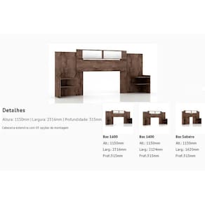 Dimensões(Cm): Comprimento(Profundidade): 31,5cm x Largura: 231,6cm x Altura: 115cm