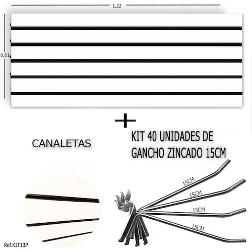 1 unidade de painel canaletado 1,22 X 0,61 + 40 Unidades de Ganchos Zincados + Canaletas Preta