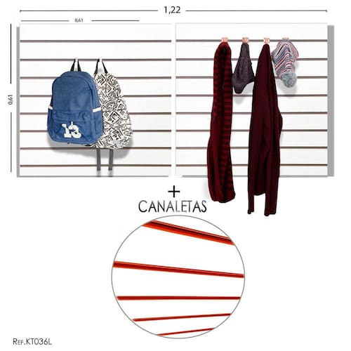 Painel Canaletado Expositor em MDF, também conhecido como SlatWall, é utilizado para exposição organizada de produtos dos mais diversos segmentos.