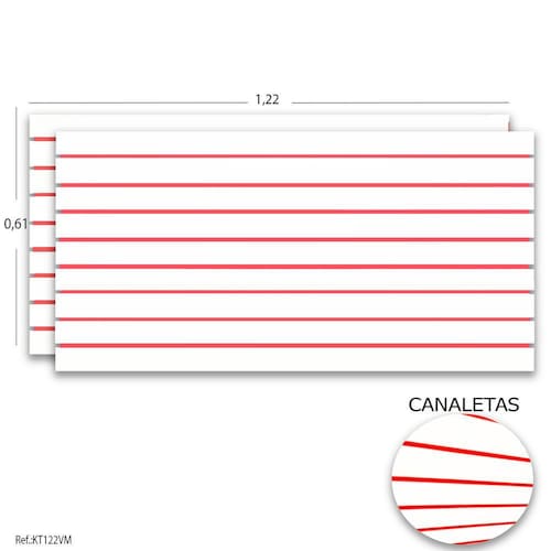Painel Canaletado Branco 1,22 x 0,61 (2 peças) + Canaletas Vermelhas