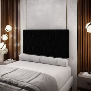 Características do Produto: Madeira de eucalipto proveniente de reflorestamento Fixação com grampos galvanizados Espuma Poliuretano D20 Revestimento: Sued Cor: Preto Tamanho: Casal padrão Fixação na parede via suportes metálicos. Embalagem: papelão ondulado, malha e plástico Garantia de 3 meses contra defeitos de fábrica.