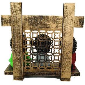 Este Kit contém 4 peças: - 3 Mini Buda Cores de 10 cm de altura - 1 Aparador exotérico vazado no tamanho de 18cm de altura x 20cm de largura x 7cm de profundidade