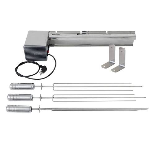 Acionado por um motor elétrico bivolt. Rotação cruzada (Os espetos giram em sentidos opostos, evitando a interferência entre os espetos). A comodidade dos espetos giratórios e os benefícios de sua técnica deixam a carne mais suculenta e grelham por igual, com total controle do ponto.