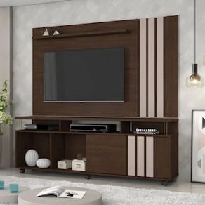 Painel Com Rack Atraente Tv Até 70 Polegadas Jcm Móveis Cacau / Off White Conjunto Painel e Rack Atraente para TV ate 70 Polegadas JCM Moveis Caracteristicas: Rodizios aparente Porta de correr com detalhe ripado Nichos para eletronicos Tubo metalico Recomenda-se TV ate 70 Acompanha suporte para TV Prateleira decorativa Espaco para TV: 1820mm x 930mm (LxA)