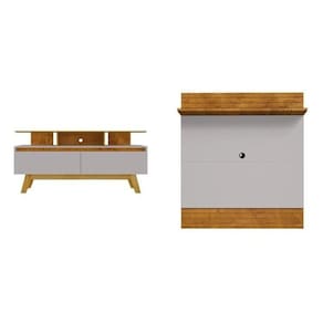 1x Rack para TV até 50 Polegadas 2 Portas 2 Prateleiras Pés em Madeira Maciça Rubi Naturalle/Off-White Largura: 120 cm Altura: 65 cm Peso: 21,47 kg Profundidade: 35,8 cm Necessita Montagem: Sim