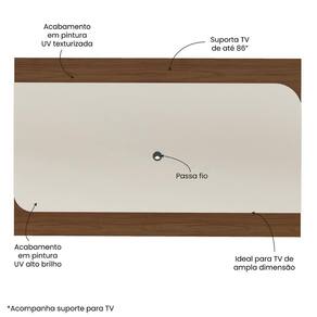 - Produzido em MDP/MDF com pintura UV: durabilidade e resistência. - Inclui suporte universal para fixação da TV: facilidade e segurança na instalação. - Detalhes curvos de elegância: um toque refinado e sofisticado. - Design que encanta espaços grandes: harmonia em dimensões ampliadas. - Transforme seu ambiente em um palco: este painel para TV foi criado para transformar salas amplas em verdadeiros cenários de entretenimento. Com capacidade para TVs de até 86 polegadas, seu design amplo e elegante oferece um toque de sofisticação sem igual. Os detalhes curvos agregam refinamento, enquanto o suporte universal para TV garante praticidade e segurança.