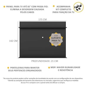 *Devido as variações de tamanho dos televisores no mercado, sugerimos que verifique as medidas da sua TV e compare com o painel antes de efetuar a compra.