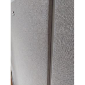 Painel com base em madeira mdf 6mm para dar sustentação. Cortiça 6mm para melhor aderência aos alfinetes. Tecido linho