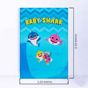 Painel de Festa Lateral com Forro Baby Shark - Fera Print - Cor: Lateral Baby Shark 2