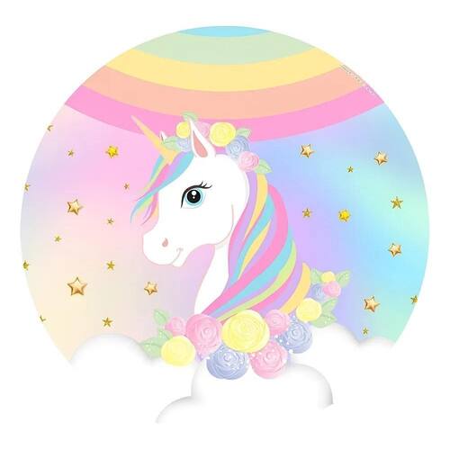 Painel De Festa Redondo Decoração De Aniversário 1,5 Unicórn