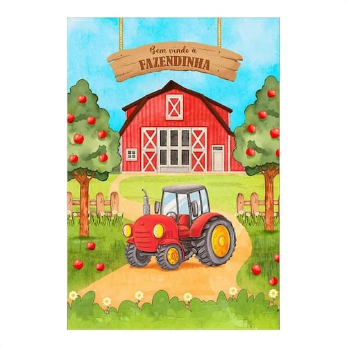 Painel De Festa Retangular Aniversário Fazendinha Aquarela