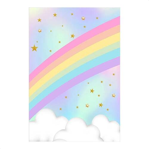 Painel De Festa Retangular Aniversário Unicórnio Arco-Íris
