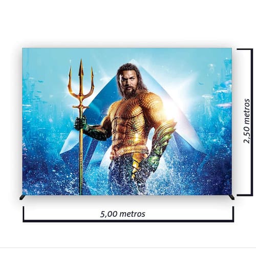 Painel de Festa Retangular Aquaman Várias Medidas - Fera Print - Medidas do Painel: Painel Retangular 5,00x2,50 metros