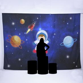 Painel de Festa Retangular Astronauta Diversas Medidas - Fera Print - Medidas do Painel: Painel Retangular 6,00x3,00 metros