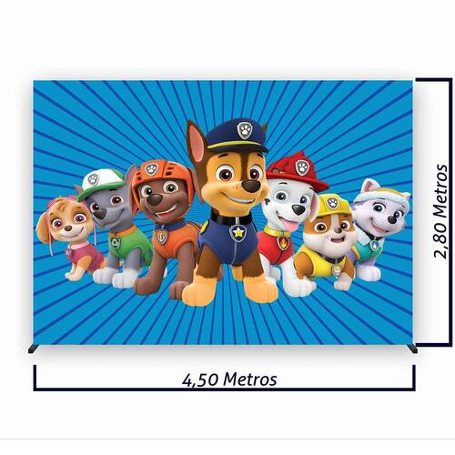 Painel de Festa Retangular Patrulha Canina Diversas Medidas - Fera Print - Medidas do Painel: Painel Retangular 4,50x2,80 metros