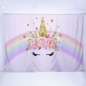 Painel de Festa Retangular Unicórnio Diversas Medidas - Fera Print - Medidas do Painel: Painel Retangular 4,50x2,80 metros