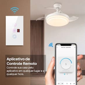 TRANSFORME SEU VENTILADOR EM SMART: INTERRUPTOR INTELIGENTE WI-FI(Compatível com Alexa e Google)Cansado de ter que levantar da cama no meio da noite para ligar ou desligar o ventilador? Quer chegar em casa e encontrar o ambiente já fresco? A solução está aqui.Com este Interruptor Inteligente, você moderniza seu ventilador de teto existente sem precisar trocá-lo. Controle tudo pelo celular ou apenas usando sua voz. É o conforto que sua casa merece com a tecnologia de ponta da automação residencial.POR QUE AUTOMATIZAR SEU VENTILADOR AGORA?Comando de Voz (Mãos Livres):Compatível nativamente com Amazon Alexa e Google Assistant. Basta dizer "Alexa, ligue o ventilador" ou "Ok Google, desligar ventilador" e a mágica acontece. Ideal para quando você está deitado ou com as mãos ocupadas.Agendamentos e Timer Inteligente:Crie rotinas automáticas. Programe para o ventilador ligar 10 minutos antes de você chegar do trabalho ou configure um timer para desligar sozinho às 3 da manhã, economizando energia enquanto você dorme.Controle de Qualquer Lugar:Esqueceu o ventilador ligado ao sair de casa? Sem problemas. Com o aplicativo (Tuya ou Smart Life) no seu smartphone, você verifica o status e desliga o aparelho de onde estiver, via 3G/4G ou Wi-Fi.Instalação Fácil com Wi-Fi + BLE:Diferente de modelos antigos, este possui tecnologia híbrida (Wi-Fi + Bluetooth). Isso significa que o aplicativo encontra o interruptor quase instantaneamente na hora da configuração, sem dores de cabeça.O QUE VEM NA CAIXA:- 1x Interruptor Inteligente para Ventilador- 1x Manual de Instruções- 1x Kit de instalaçãoFICHA TÉCNICA:- Tensão: Bivolt Automático (100-240V - 50/60Hz)- Potência Máxima: 300W (Suporta a maioria dos ventiladores)- Corrente Nominal: 10A- Conectividade: Wi-Fi 2.4Ghz + BLE (Bluetooth Low Energy)- Apps Compatíveis: Tuya, Smart Life, Alexa, Google Home- Material: PC + ABS (Retardante a chamas)- Temperatura de Operação: -20°C a 50°CAtualize sua casa hoje mesmo. Conforto, economia e tecnologia em um simples toque. Marca: Não Informado