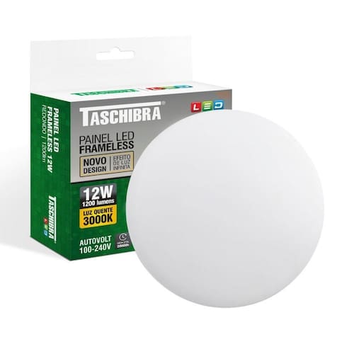 Painel de Led Frameless Redondo Embutir/Sobrepor 12W Bivolt Taschibra 3000K Luz Quente