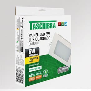 Painel de Led Quadrado Embutir 6W Bivolt Taschibra 3000K Amarelo Quente - Características Gerais do Produto: Dimensões AxLxP cm : 12 X 12 X 1,5 Nicho do Recorte cm : 11 x 11 Produzido em: Alumínio Voltagem: Autovolt tanto em 110v como em 220v Cor Acabamento: Branco Fosco Potência: 6W Fluxo Luminoso: 360 Lumens Eficiência Luminosa: 60 Lm/W Ângulo de Abertura: 120 Formato: Quadrado : 1 ano junto ao fabricante Aplicação: Embutir Vida Útil: 15.000 horas Acompanha Lâmpada: Não necessita, LED já integrado Acompanha o produto: 01 Painel Led Completo 01 Driver Ligação 01 Kit Instalação : 1 ano junto ao fabricante Marca: Não Informado Ean: 7897079081176